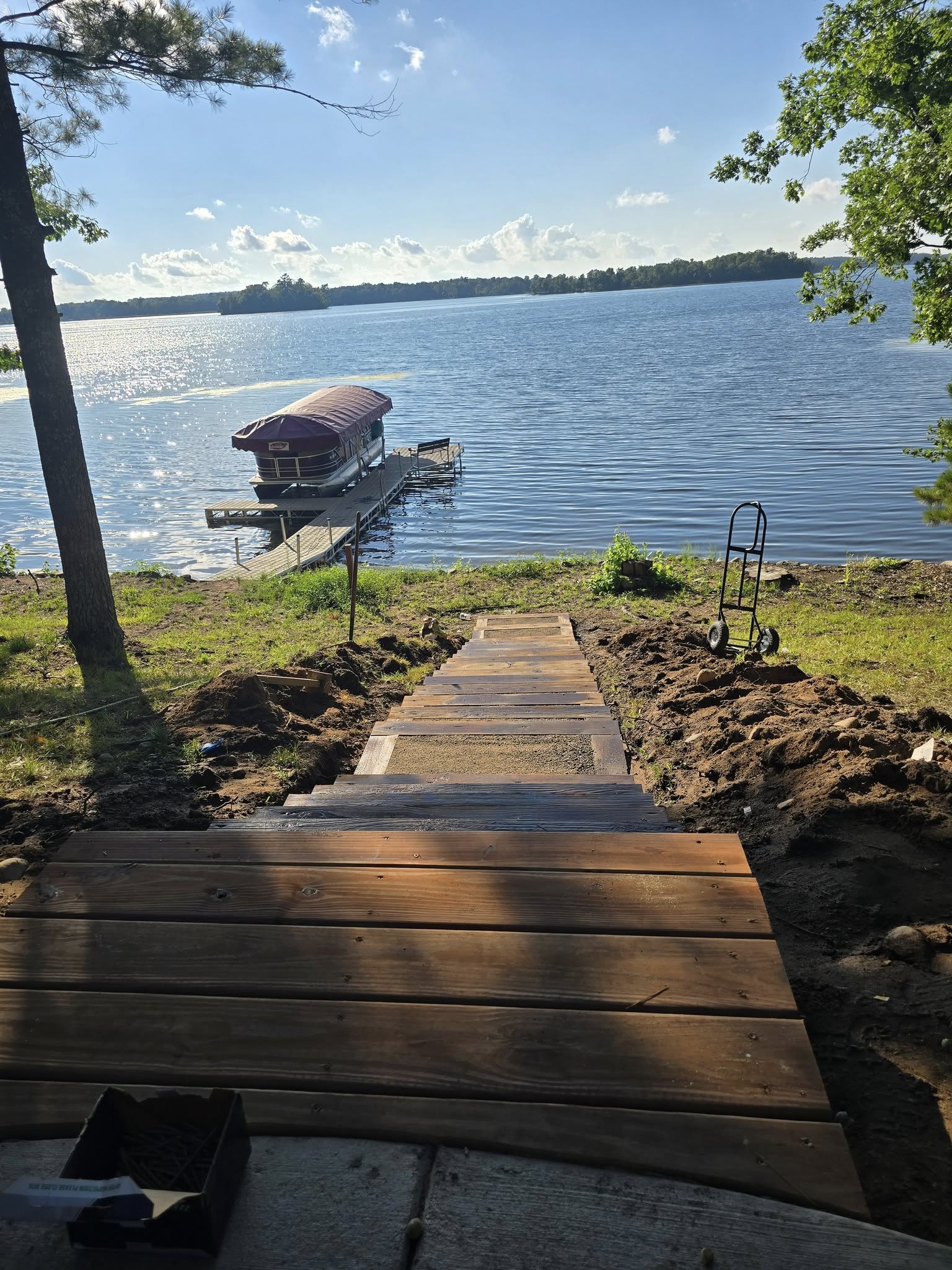 We will work on most any exterior construction project. Building stairs to a pier, sodding your lawn, planting shrubs, cleaning up existing landscape. You name it, we'll take care of it.
